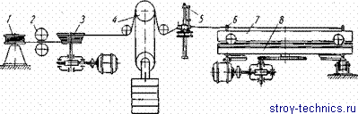 Рис. 237. Схема установки для электротермического натяжения стержневой арматуры