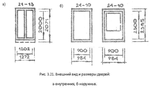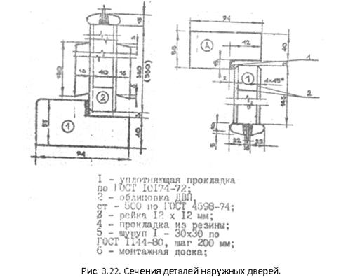 Спецификация заполнения дверных проемов приведена в таблице 3.10. Внешний вид и узлы дверей показаны на рисунках 3.21 и 3.22 соответсвено.