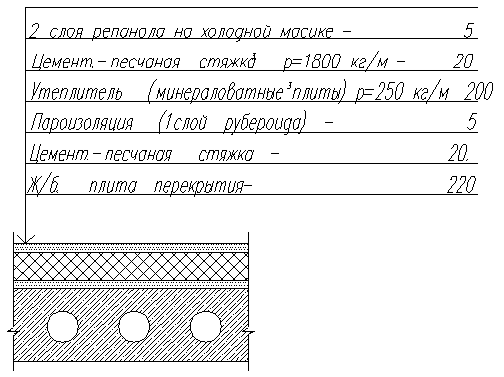 Для полов и покрытий здания приводятся эскизы с указанием слоев и материла, плотности материала и толщины слоя.