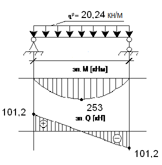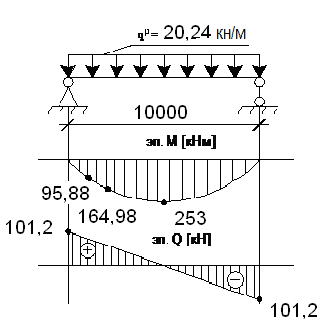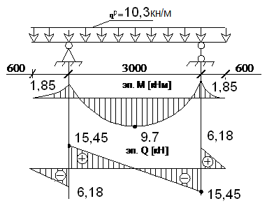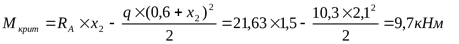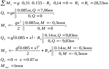 Расчётные усилия в балке Мьах и Qмах определяем по правилу строительной механики.