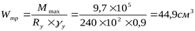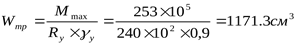 – требуемый момент сопротивления сечения плиты определяем по 2 участку.