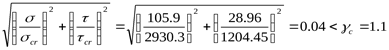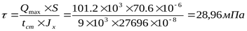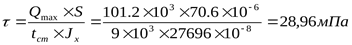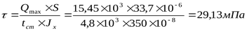 Прочность от совместного действия нормальных и касательных напряжений на опоре обеспечена.