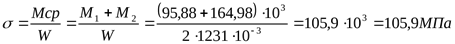 Проверка прочности от совместного действия нормальных и касательных напряжений: