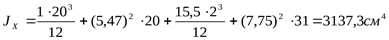 Проверка прочности сварных угловых швов соединяющих ребро и колонну от действия нормальных и касательных напряжений: