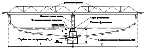 - возможным размывом грунта у фундамента при возведении его в русле реки (на водотоке.);