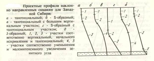 При отклонении забоя скважины свыше 300 м используют S-образный четырхинтервальный профиль, включающий вертикальный участок начального искривления, тангенсальный участок и участок уменьшения зенитного угла.
