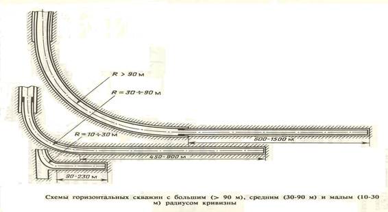 Интенсивность искривления при бурении таких скважин составляет 1-2,5º на 1 м. при длине горизонтального участка 90-250 м.