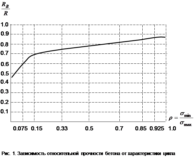уменьшается. На рисунке 1 изображена кривая зависимости Экспериментально установлено, что предел выносливости бетона может снизиться до