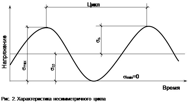 Такие испытания могут производиться как на натурных объектах, так и на моделях с использованием теории моделирования. Рассмотрим одну задачу – влияние многократно повторяющихся нагрузок на прочность материала. При действии таких нагрузок с числом повторений за время эксплуатации конструкции в несколько миллионов раз предел прочности материала в зависимости от характеристики цикла