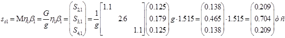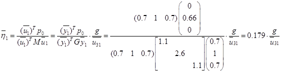 В третьей таблице для каждой собственной формы колебаний (СФК) отражаются относительные перемещения масс расчетной схемы по направлению их степеней свободы. При этом наибольшее перемещение в СФК принято равным единице. В рассматриваемом примере для системы с одной степенью свободы имеется только одна форма колебаний с одной ординатой, равной единице.