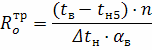 Δtн – нормативный температурный перепад между температурой воздуха в помещении и внутренней поверхности наружного ограждения;