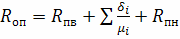 – термическое сопротивление теплопередаче отдельного материального слоя, м2