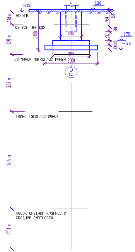 Проектируем свайный фундамент с забивными железобетонными сваями и монолитным ростверком. Глубину заложения верха ростверка принимаем из конструктивных соображений 1.8 м. Высоту ростверка принимаем равной 0.6 м. Величина заделки сваи в ростверк принимаем 0.3 м. В качестве естественного основания принимаем глину тугопластичную.