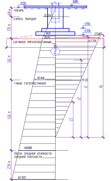 zi – глубина заложения итого слоя с поверхности до середины слоя.