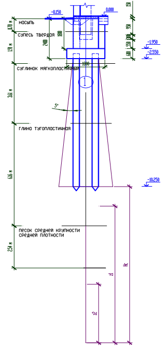 Неравенства выполняются, следовательно проверка условий работы крайних свай показала, что свайный фундамент запроектирован рационально.
