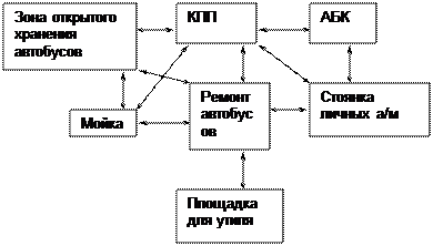 1. Технологические требования: отсутствуют пересекающиеся направления потоков машин и людей. По периметру участка имеются два подъездных пути.