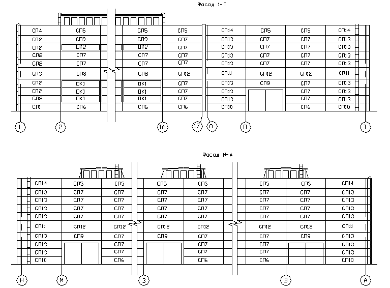 Рис.2 Схема раскладки стеновых панелей (фрагменты фасадов).
