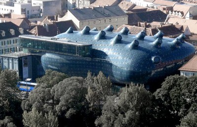 Музей искусств в Граце. Здание, висящее в воздухе.