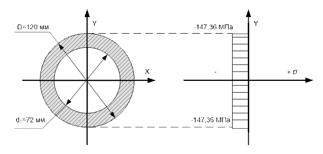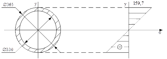Рис. 9. Эпюра нормального напряжения в опасном сечении для кольца