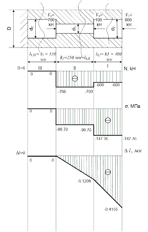 - определить геометрические размеры поперечных сечений стального бруса (диаметры d1