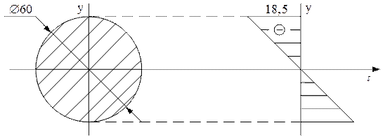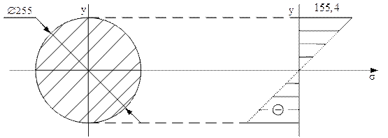 Рис. 8. Эпюра нормального напряжения в опасном сечении для круга