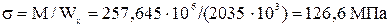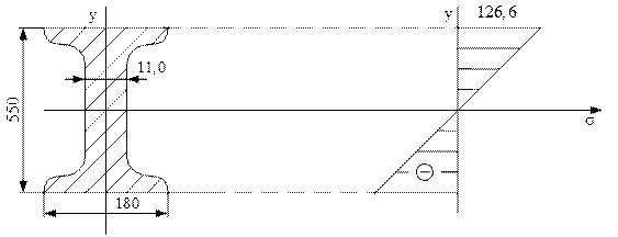 Рис. 6. Эпюра нормального напряжения в опасном сечении для двутавра