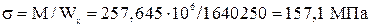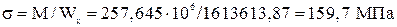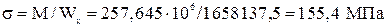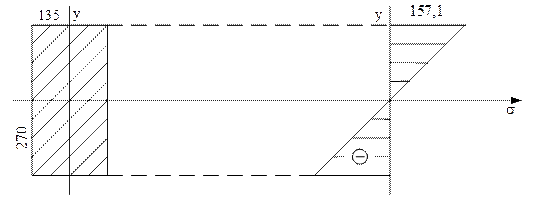 Рис. 7. Эпюра нормального напряжения в опасном сечении для прямоугольника