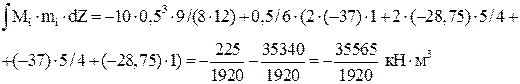 – уравнение изгибающего момента от действия приложенной в середине пролёта единичной силы на соответствующем участке балки.