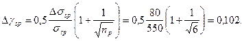 Вычисляем предельное отклонение предварительного напряжения при числе напрягаемых стержней np =6 по формуле: