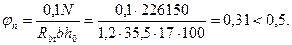 = 45 см принимаем шаг хомутов 10 см.