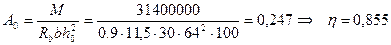 Аs 1 =М1 /0,9h0 Rs =150636000/0,9·86·280·100=69,5 см2