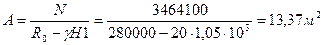 Площадь подошвы фундамента определяем предварительно без поправок R0 на ее ширину и заложение: