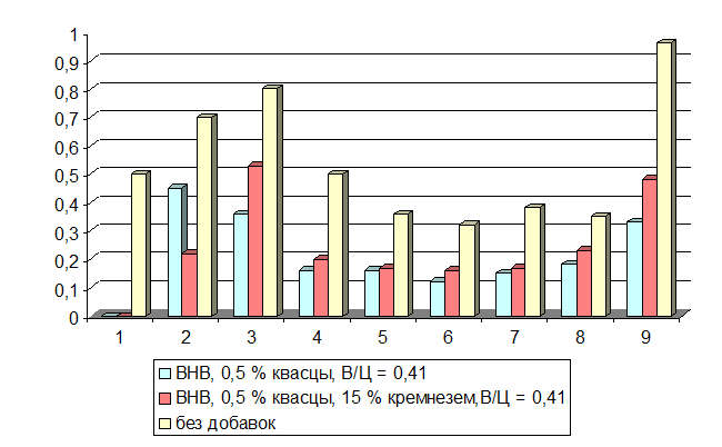 ВНВ, 15% SiO2, 0,5% КВАСЦЫ, В/Ц = 0,41 |