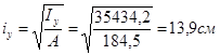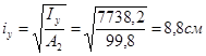 Підбираємо переріз кутика із двох рівнополицевих кутиків 200Ч12 з An =94,2см2 , ix =6,22см, iy =7,5см2 (рис. 14).