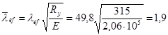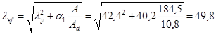 Необхідно обчислити приведену гнучкість колони l ef , яка залежить від перерізу розкосів, тому спочатку підбираємо переріз елементів решітки. Розкоси решітки розраховують на більшу з поперечних сил: фактичну Q 1 =87кН або умовну