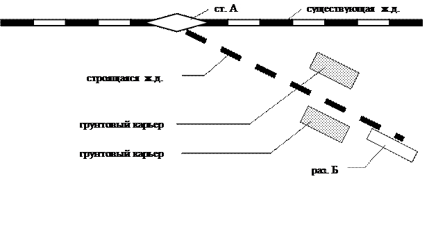 Местоположение звеносборочной базы на станции примыкания строящейся железной дороги ……………………………………………………………ст. А