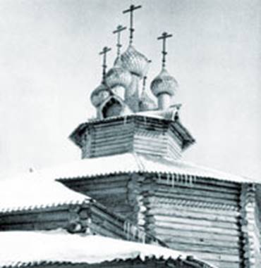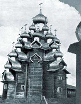 В XVII-XVIII веках распространились ярусные храмы, завершавшиеся несколькими уменьшенными срубами, поставленными друга на друга.