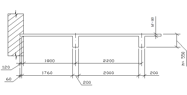 При ширине второстепенных балок b= 200 мм и глубине заделки плиты в стену а3 = 120 мм получим:
