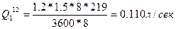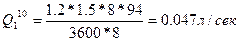 - расход воды на санитарно-бытовые нужды в л/сек;