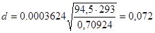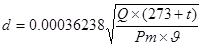 Производим расчет диаметров по участкам: