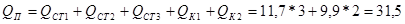 Находим общий расход газа всего оборудования