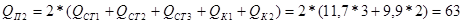 Qобщ. = 1,5х27+1,3х54=40,5+70,2=110,7 м3 /ч