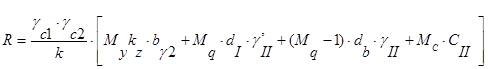 - расчетное сопротивление грунта залегающего непосредственно под подошвой условного фундамента: