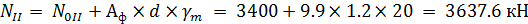 = 5.72 х 5.72 х 19.65 х 7.9 = 5079 кН;