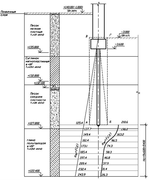 Величину ожидаемой осадки свайного фундамента из висячих свай рассчитывают по предельным состояниям второй группы. Расчет осадки производится как для условного фундамента на естественном основании с использованием метода послойного суммирования.