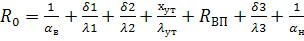 Находим сопротивление теплопередаче, вычисляемой по формуле: