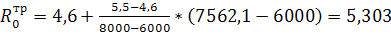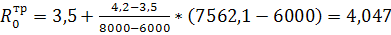 Методом интерполяции определяем требуемое сопротивление теплопередачи: