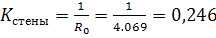 Для того, чтобы найти коэффициент теплопередачи наружной стены необходимо найти сопротивление теплопередаче, вычисляемой по формуле: