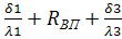 λ1, λ2, λ3- коэффициент сопротивления теплопередачи, Вт/м²*