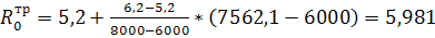 Методом интерполяции вычисляем требуемое сопротивление теплопередачи ограждающих конструкций: